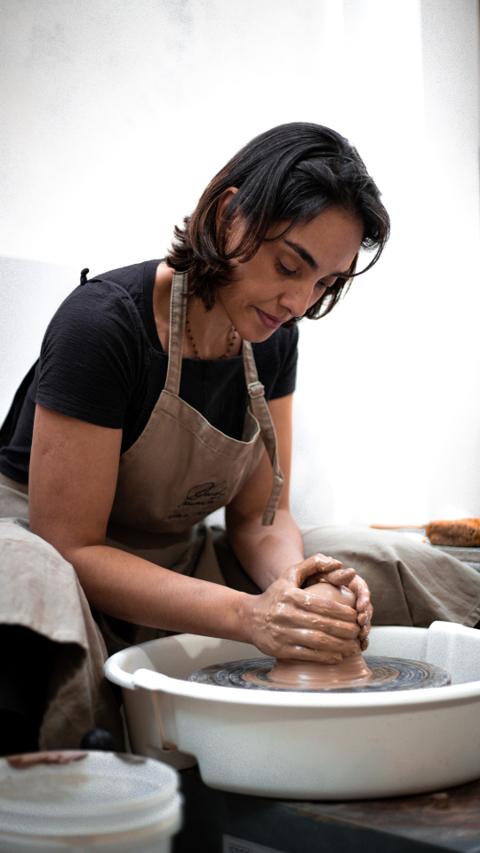 Practice the clay techniques: Pinch, Slab and Coil in depth with 10 sessions for wheel throwing to build advanced forms. Finish and glaze the articles.
